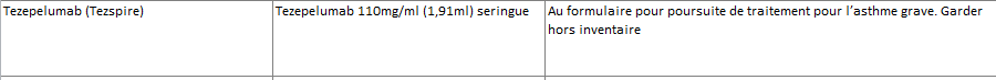 ferméAjout Tezepelumab (Tezspire