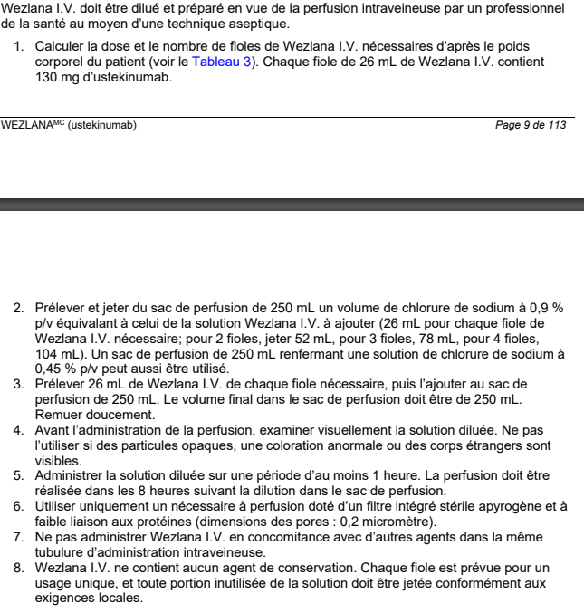 @Mélanie Lacerte Biosimilaire de Stelara I.V. donc fiche similaire à celle-ci.