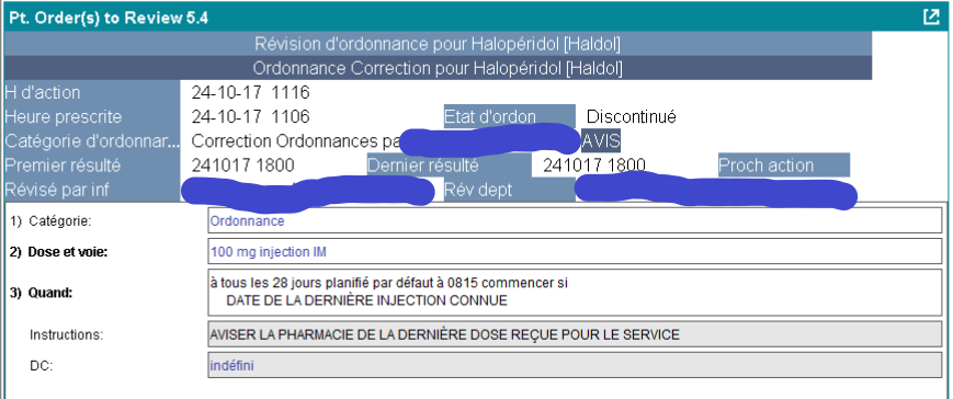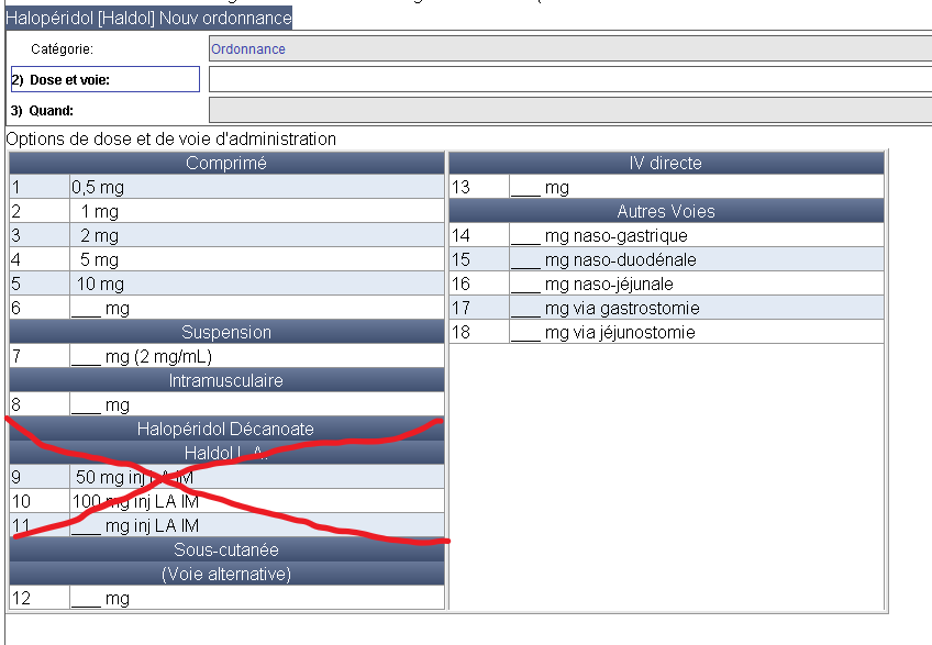 Il y a le choix du longue action dans l'Halopéridol. Par contre, si jamais c'est dans l'Halopéridol qu'il est choisi, la seule façon de le voir est dans le champs « dose et voie » avec le LA.
