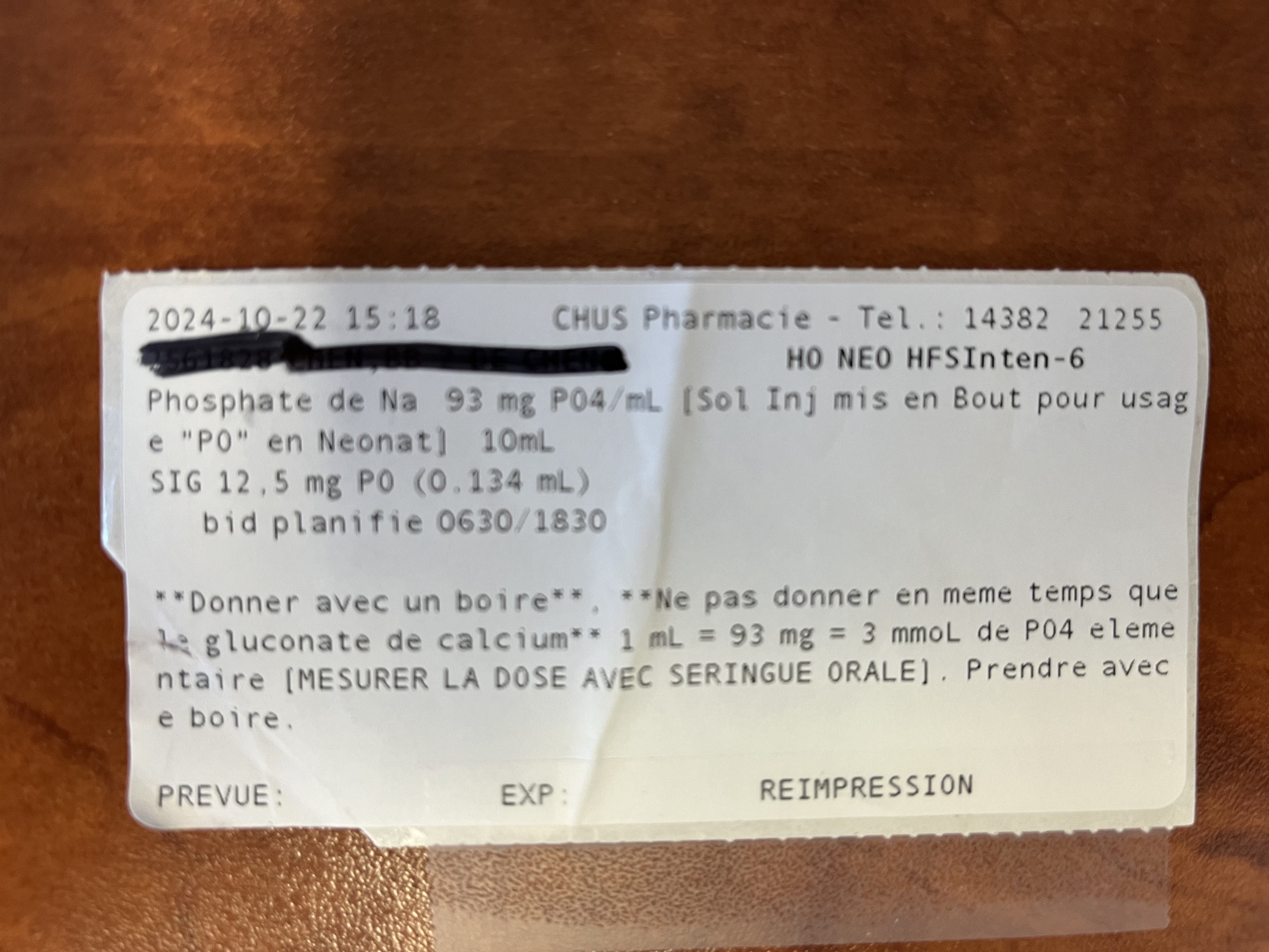 La fiole de phosphate de sodium indique clairement 3 mmoL/mL dans son identification lors d'une sélection de la solution injectable mise en bouteille. Il n'est pas possible de voir (pour une vérificatrice) le 93 mg P04/mL sur la fiole.