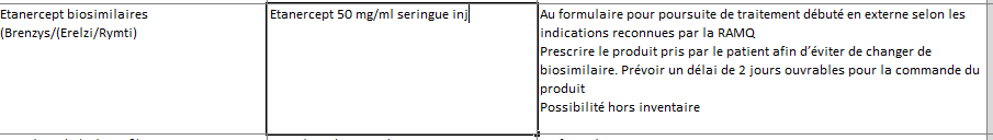 ferméModification saisie biosimilaire: etanercept