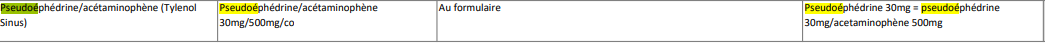 ferméRetrait PSEUDOÉPHÉDRINE (SUDAFED)/ajout et substitution par ACÉTAMINOPHÈNE/PSEUDOÉPHÉDRINE (Tylenol SInus)