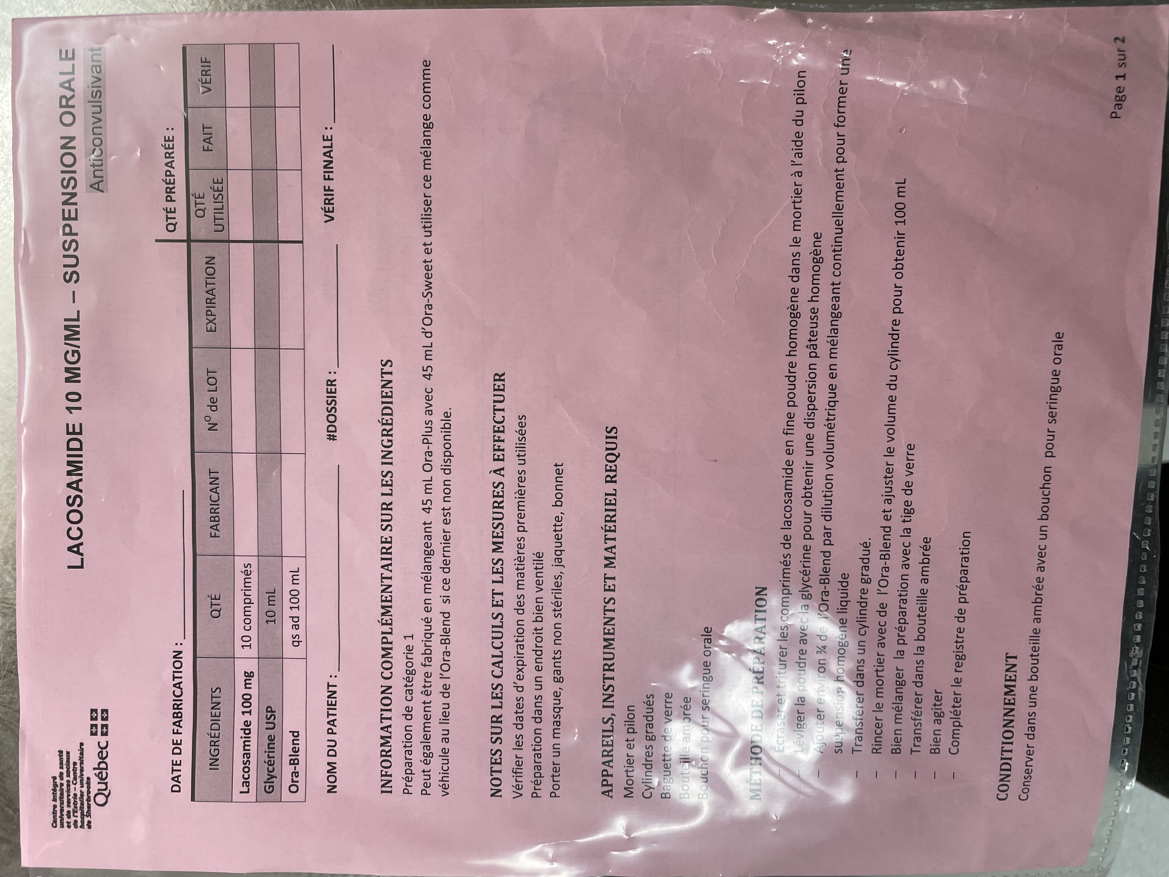 J'ai garder les comprimés pour les voies alternatives et on a aussi du IV.