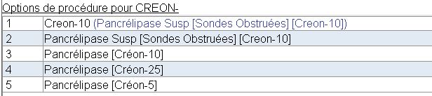 Modifier le nom pancrélipase (présente une teneur accrue en lipase) pour pancréatine (un mélange d'enzymes pancréatique contenant lipase, amylase et protéase) Le créon n'est pas codé de façon standard entre les deux installations dans l'ensacheuse. Il faudrait que le nom dans Ariane, dans Virtuo et sur les sachets soient similaires.
