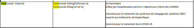 ferméModifier indications tocilizumab et changer le nom du produit pour le biosimilaire Tyenne