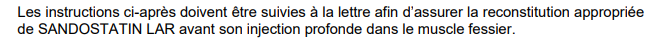 @Sylvie Perreault et @Geneviève Roy S'assurer de Joindre le feuillet explicatif avec toute dose servie de Sandostatin LAR
